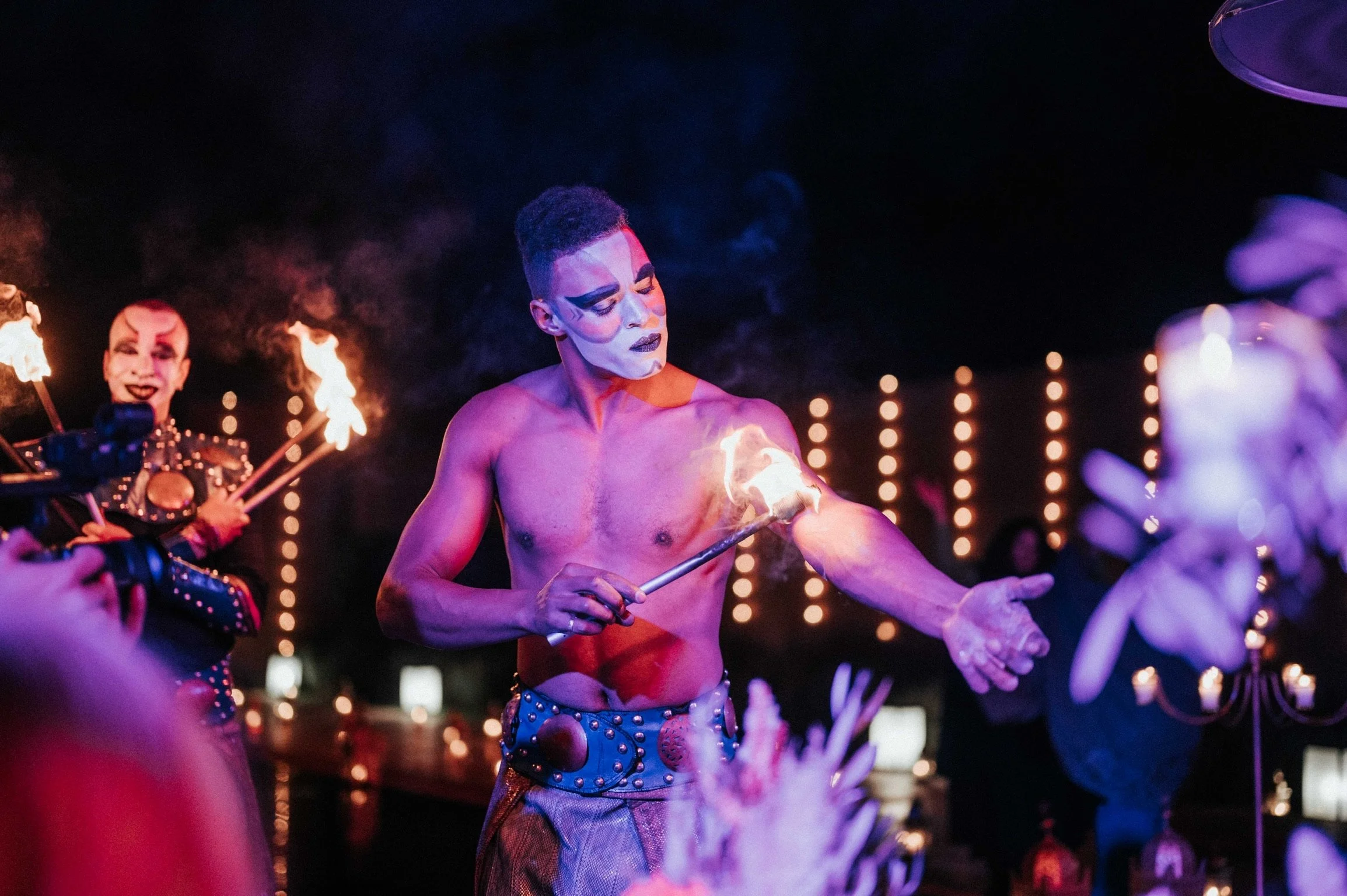 Evenings were structured around live music, dancers, drummers, and fire performances, integrated into the setting. Arabian horses were introduced as part of the experience, and the final night concluded with a fireworks display.
